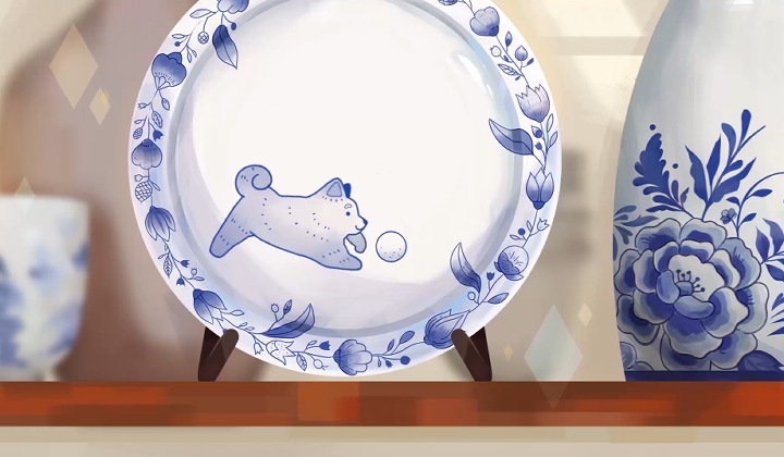 ‘Porcelain’ is a 2D animated sequence that follows a porcelain dog’s chase for its ball through a pottery shelf. Weaving through each piece, a visual adventure unfolds as illustrations come to life, exploring the different styles of pottery.