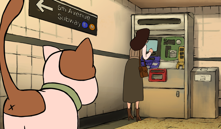 A little cat named Mao sneakily follows her owner around town, helping her escape claw-ful cat-astrophes.