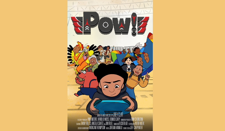 A Native American kid scrambles to charge his dying video game console at a bustling intertribal powwow.