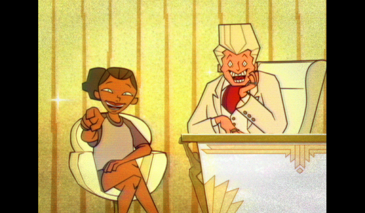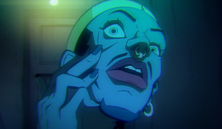 A woman is abducted to the insides of her TV, where she is tormented by some sort of cartoony American host. Going through numerous genres, the character is gradually being assimilated to this television system.