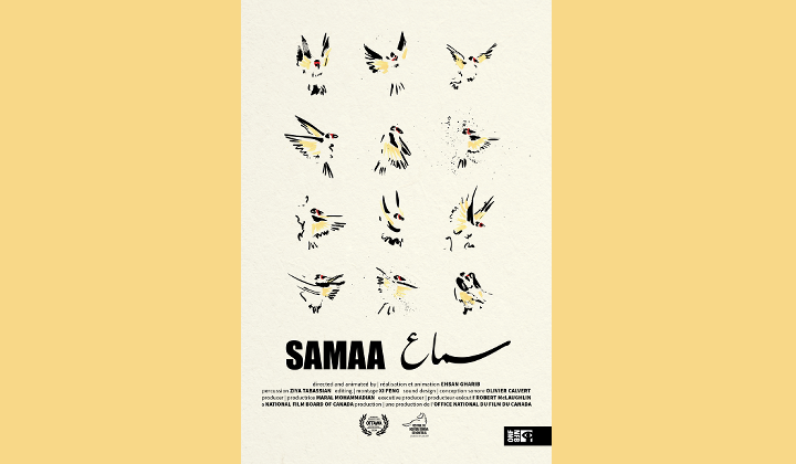 In Samaa, filmmaker Ehsan Gharib invites us into imagined captivity using striking, hand-painted animation and visceral drumming. The bird’s dramatic plight begs the question: Is freedom a state of being, or is it a state of mind?